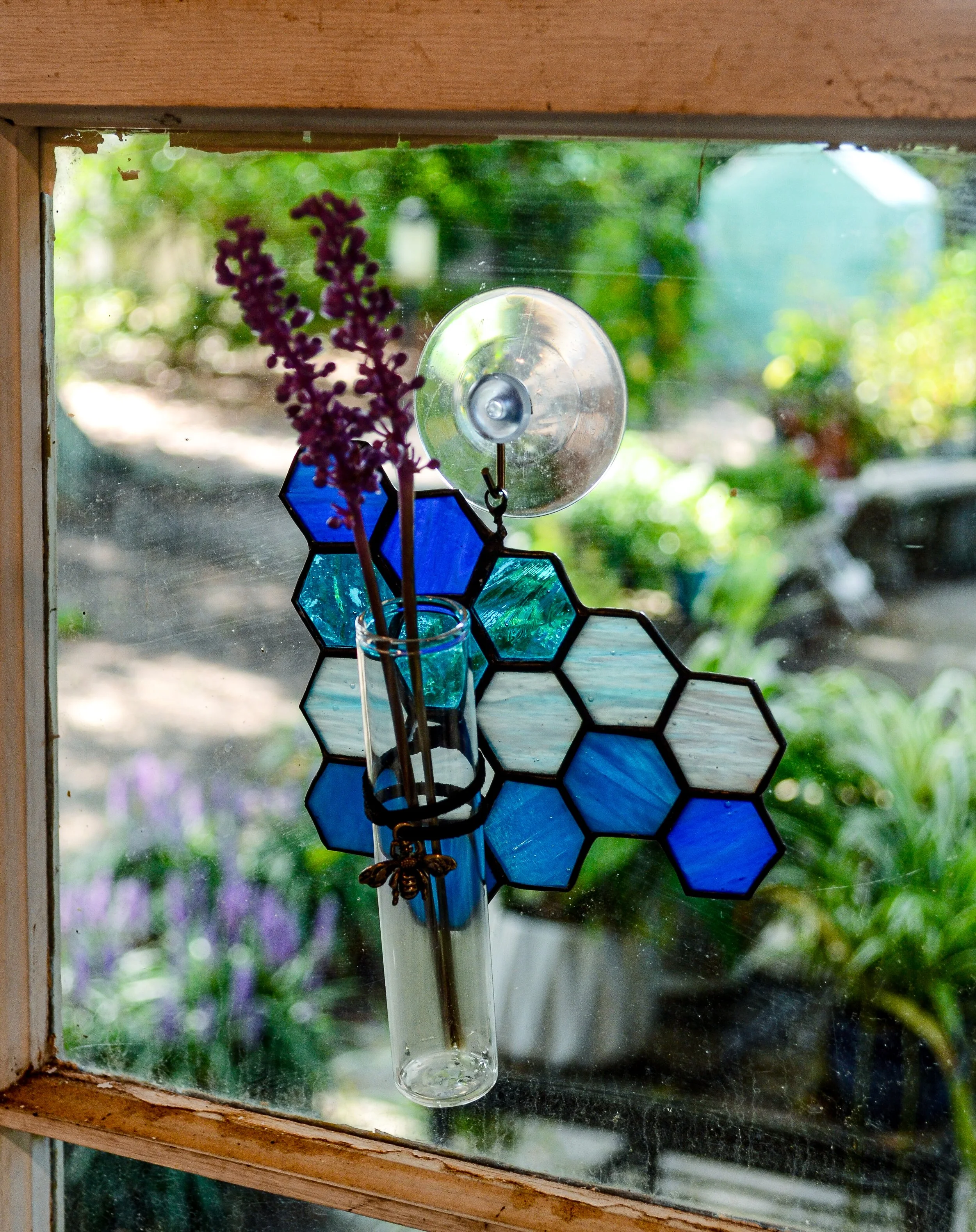 Each piece takes its own unique journey from start to finish. It begins with an idea, then slowly takes form through the process of pattern creation, glass selection, shaping, grinding, and soldering the finished work.